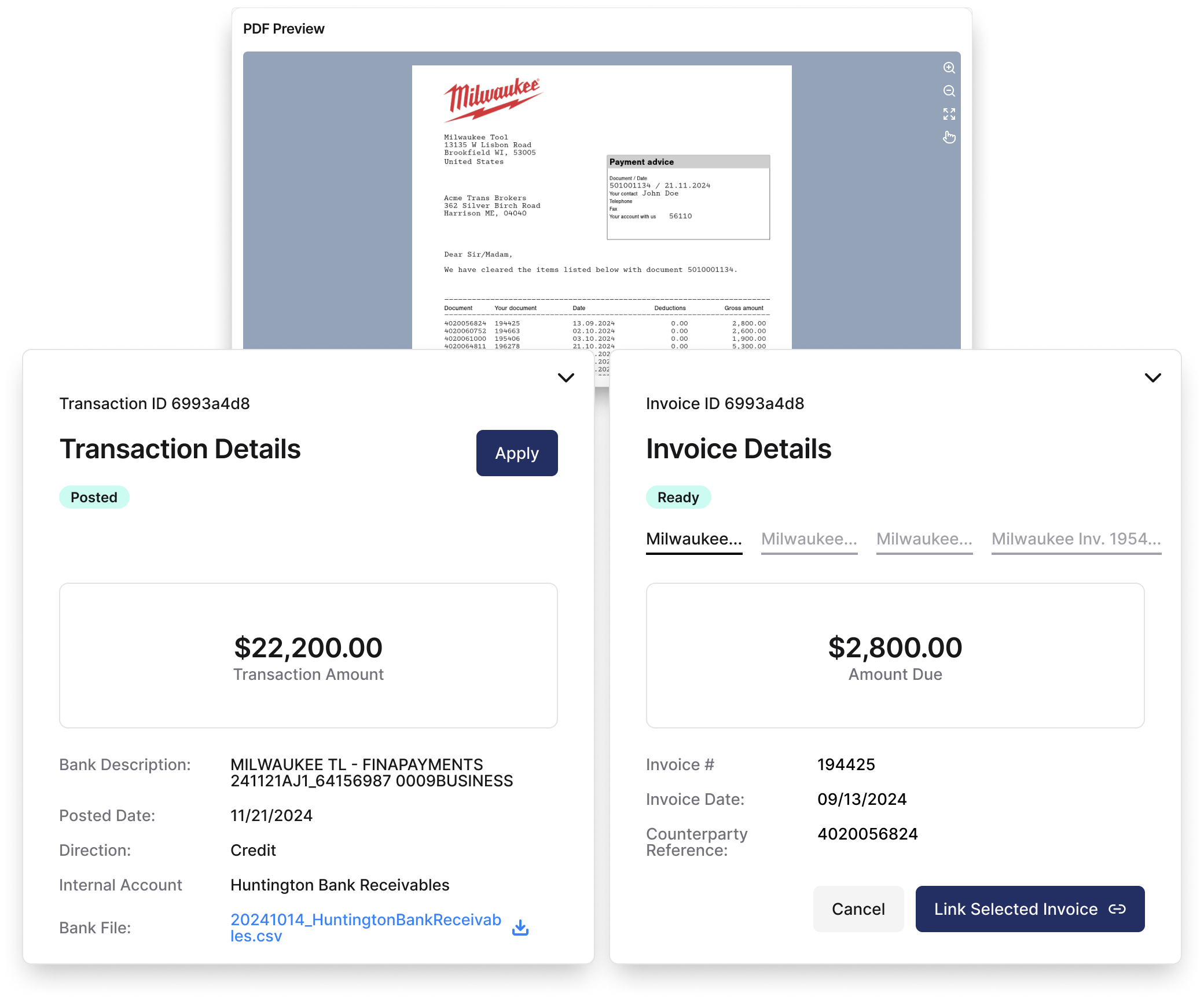 - Match every payment to the correct invoice or payable. Manage exceptions in a simple workflow.
